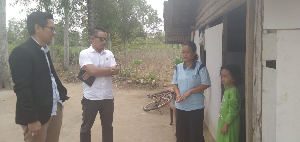 Lampung Tengah–Anggota Fraksi Golongan Karya (Golkar) DPRD Lampung Tengah (Lamteng) diwakili Yulius Heri Susanto dan Agus Suwandi kunjungi kediaman keluarga Mistiani (39) yang tinggal di bekas kandang sapi, Rabu 4 September 2019. Di tempat itu Fraksi Golkar memberikan tali asih.