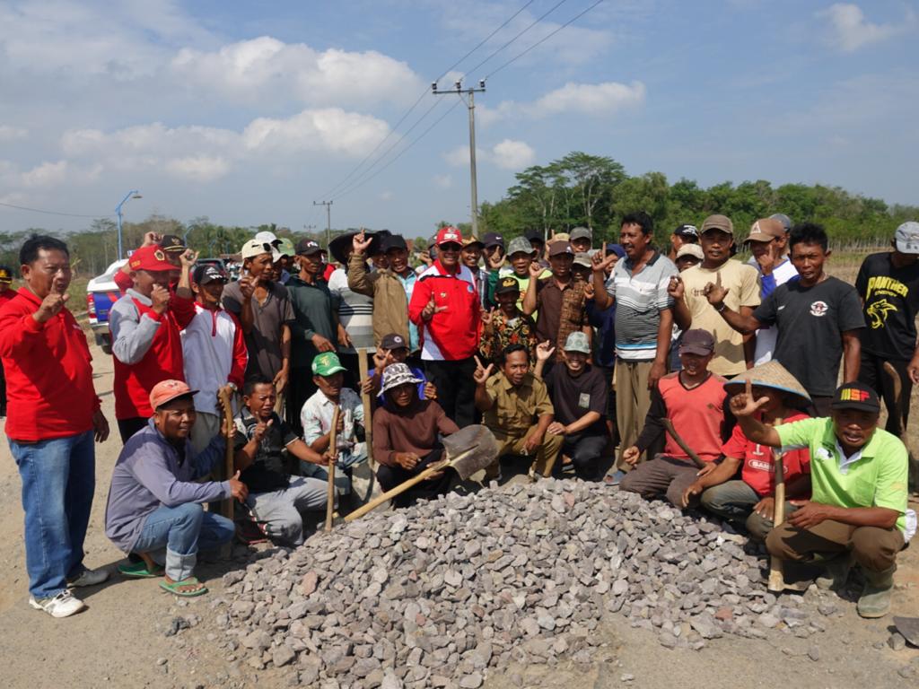 Lampung Tengah — Bupati Lampung Tengah (Lamteng) Loekman Djoyosoemarto melakukan kegiatan gotong royong perbaikan jalan di Karang Sio Kampung Bandar Putih Tua, Selasa, 8 Oktober 2019.