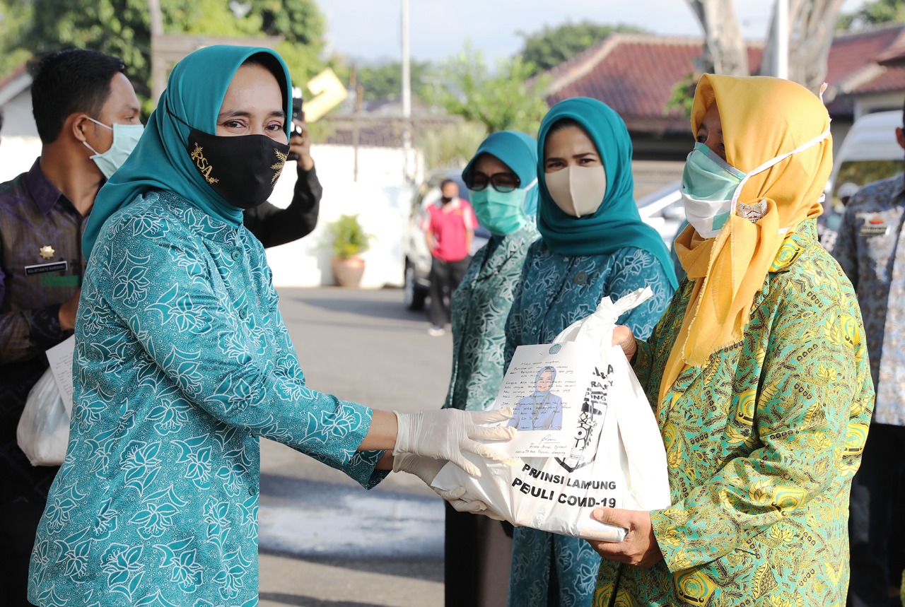 Pada kesempatan yang sama, Ibu Riana Arinal juga menyerahkan secara simbolis 2.250 paket sembako kepada Tim Penggerak PKK Kabupaten/kota untuk didistribusikan kepada masyarakat yang berhak menerimanya, khususnya bagi masyarakat terdampak Covid-19. (Adpim)