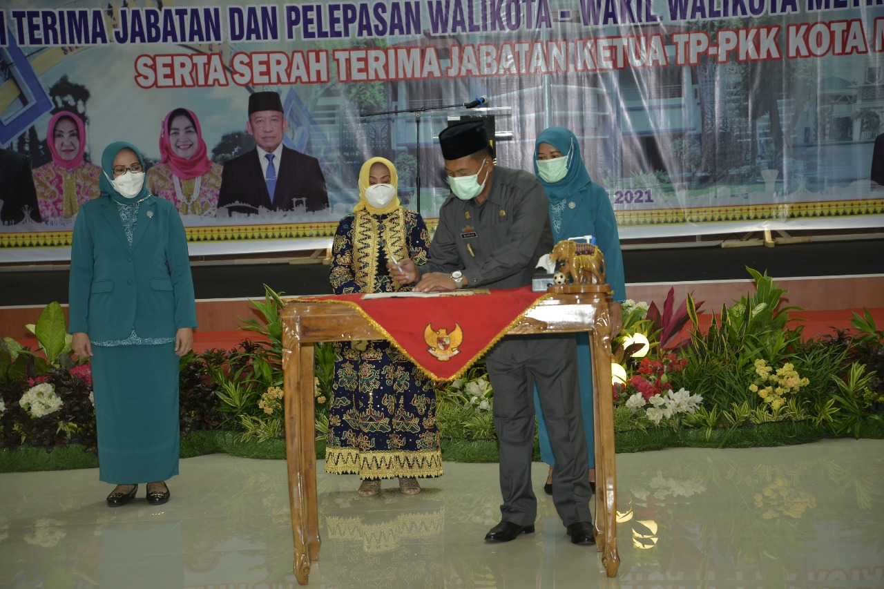 Dalam kegiatan ini, Walikota Metro Achmad Pairin menandatangani sertijab kepada Misnan selaku Pelaksana Harian (Plh) Walikota Metro, dilanjutkan serah terima jabatan Ketua TP-PKK Kota Metro Heriyati Pairin kepada Plh. ketua TP-PKK Nursari Nurhan Misnan. Penandatanganan berita acara serah terima jabatan ini disaksikan oleh Staf Ahli Gubernur Bidang Pemerintahan, Hukum dan Politik Provinsi Lampung Irwan Sihar Marpaung. (Bams)