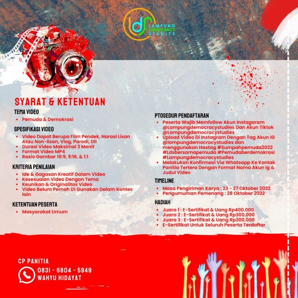 Bandarlampung – Dalam rangka menyemarakkan hari sumpah pemuda Lampung Democracy Studies (LDS) menggelar lomba kreasi video.