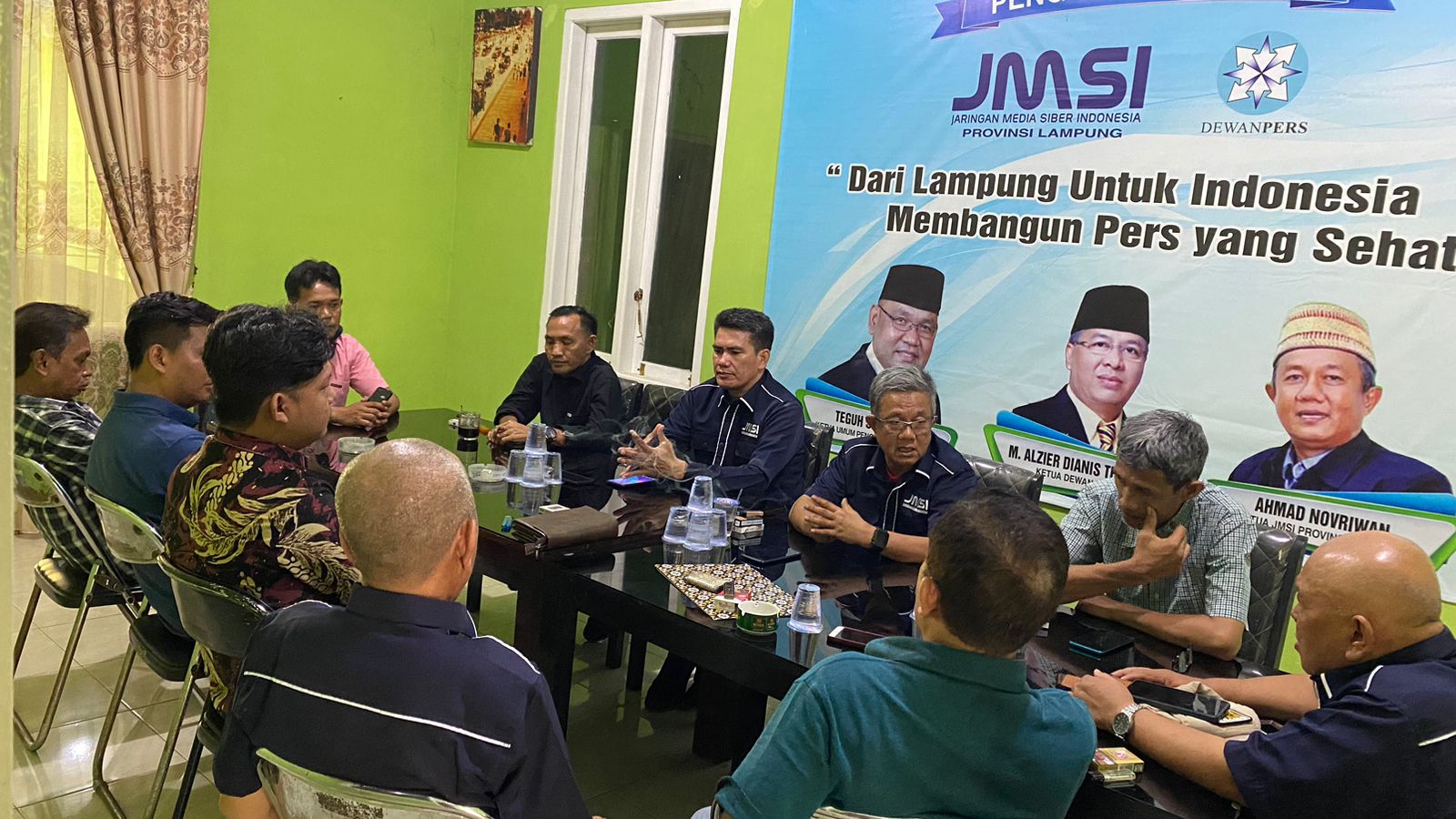 BANDARLAMPUNG – Advokat dari YLBH 98 menyambangi kantor Jaringan Media Siber Indonesia (JMSI) Lampung di Jalan Emir M. Nur Gang Karya Muda III Telukbetung Selatan, Bandarlampung. Senin (15/5).