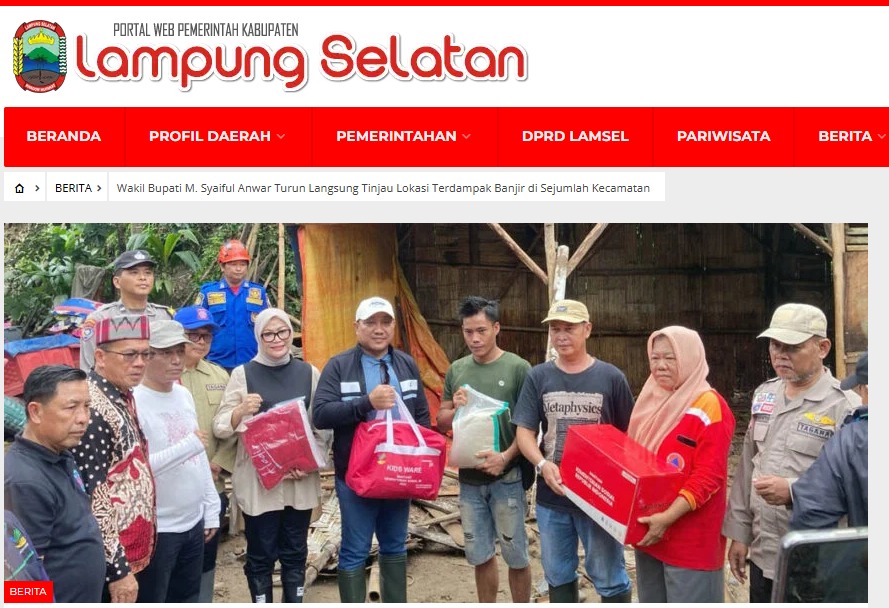 Selain melakukan peninjauan ke lokasi banjir, Wabup Lampung Selatan, M. Syaiful Anwar juga membawa bantuan tanggap darurat untuk warga yang rumahnya hanyut diterjang banjir.