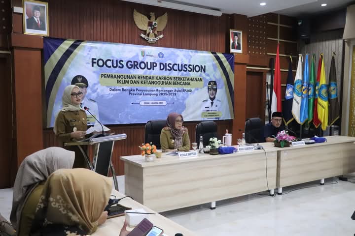 Bandar Lampung – Wakil Gubernur Lampung, Jihan Nurlela, membuka Focus Group Discussion (FGD) pembangunan rendah karbon berketahanan iklim dan ketangguhan bencana di Ruang Sidang Utama Politeknik Negeri Lampung (Polinela), Senin (14/04/2025).