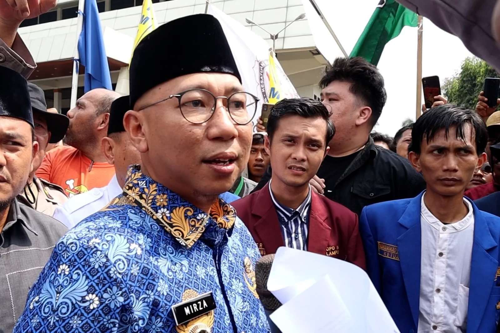 Bandar Lampung — Gubernur Lampung, Rahmat Mirzani Djausal, turun langsung menemui ratusan massa yang menggelar unjuk rasa di depan Gerbang Masuk Komplek kantor Pemerintah Provinsi Lampung, Senin (5/5/2025).