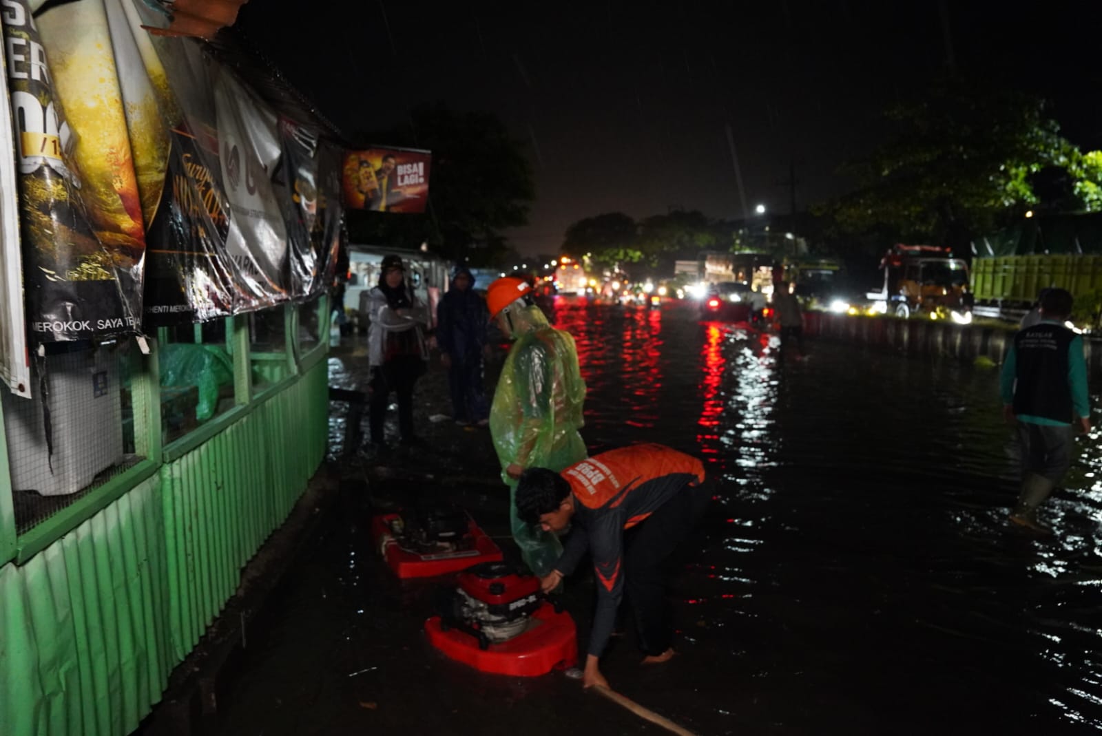 Tim reaksi cepat Kota Bandar Lampung datang ke lokasi melakukan penyedotan air menggunakan alkon. Namun hingga air surut perwakilan Balai Pelaksana Jalan Nasional Daerah Lampung tak ada satupun perwakilan yang datang membantu.