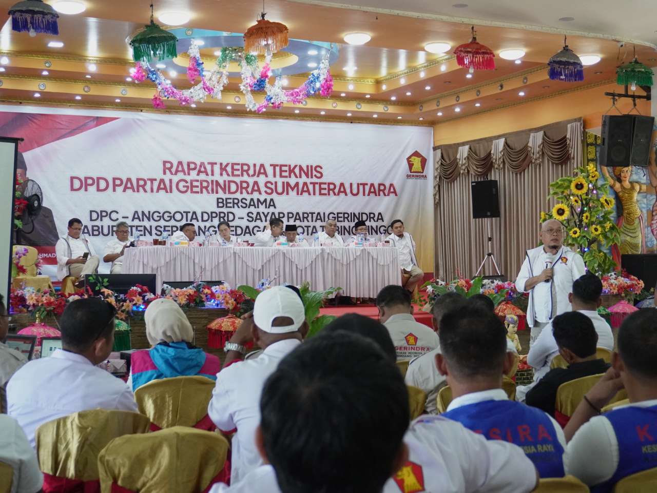 Serdang – Dewan Pimpinan Daerah (DPD) Partai Gerindra Sumatera Utara menggelar Rapat Kerja Teknis (Rakernis) bersama Dewan Pimpinan Cabang (DPC), sayap partai, dan anggota DPRD daerah pemilihan Serdang Bedagai dan Tebing Tinggi. Kegiatan ini berlangsung dengan semangat soliditas dan penguatan struktur partai menjelang pemilu 2029. Acara di Pantai Bali Lestari, Senin 19 Mei 2025.
