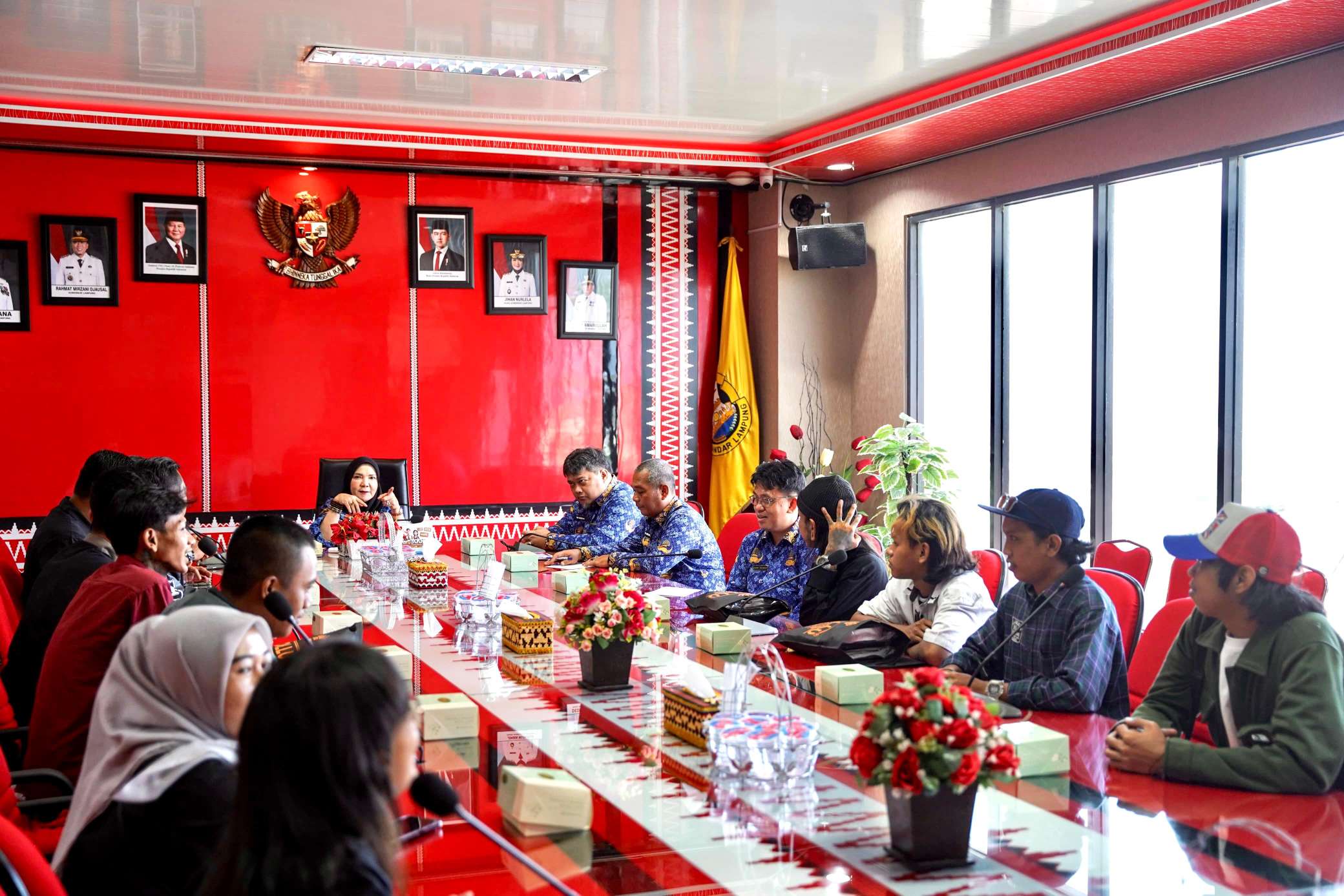 Dalam audiensi ini, Walikota Bandar Lampung Eva Dwiana menyerahkan bantuan uang tunai Rp. 50 Juta untuk operasional dan pembelian cat untuk para seniman mural.