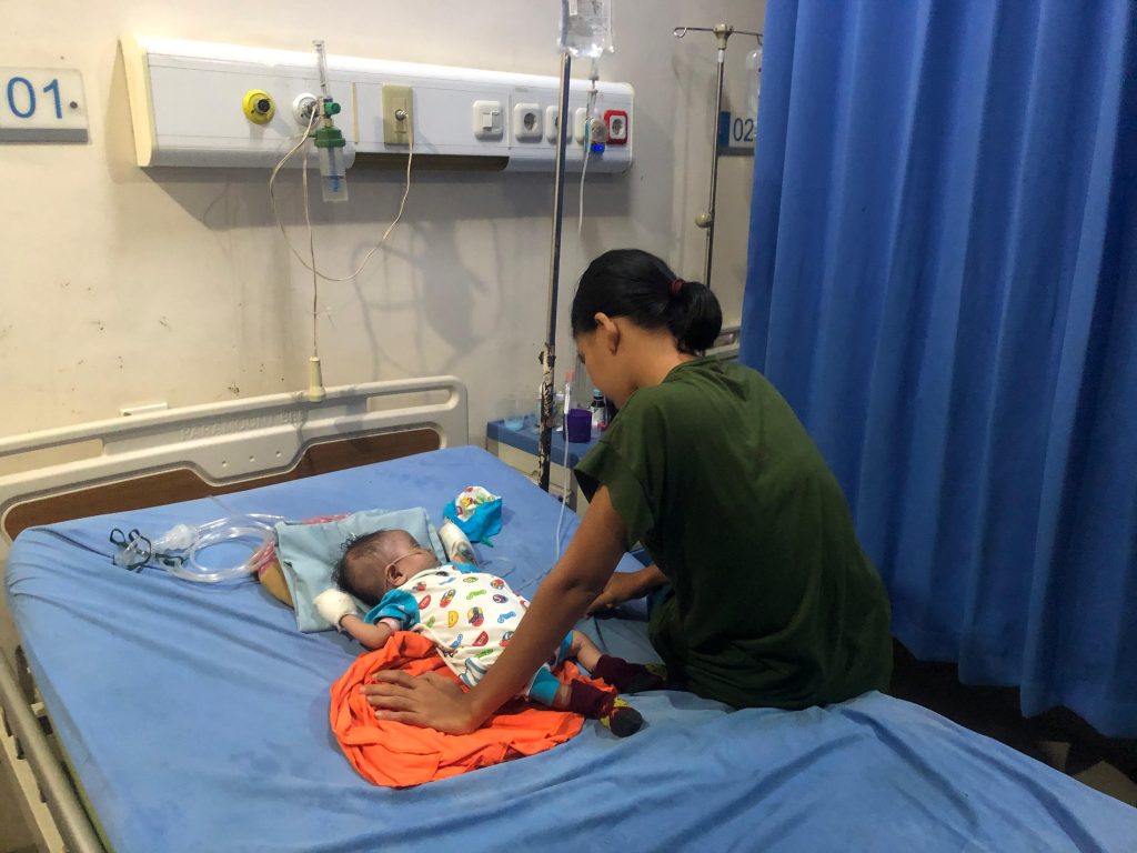Perjuangan mereka berfokus pada kesembuhan buah hati yang masih berusia tiga bulan, Anggia bayi 3 bulan dengan berat badan hanya kg ini, tengah berjuang melawan pneumonia dan kebocoran jantung.