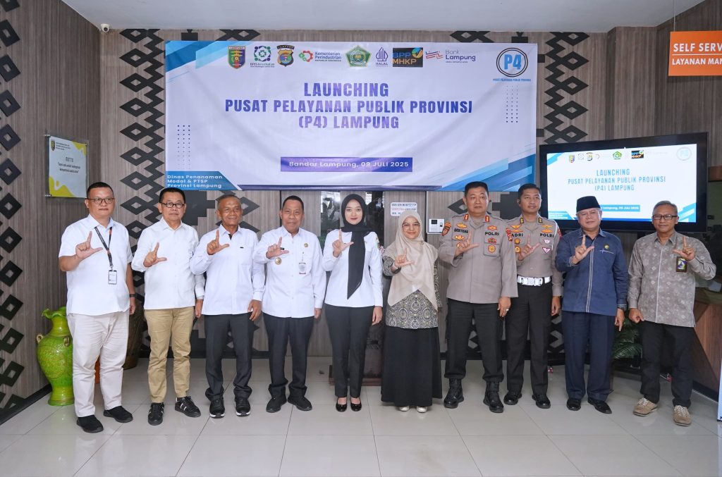 BANDARLAMPUNG—Wakil Gubernur Lampung, Jihan Nurlela meresmikan Pusat Pelayanan Publik Provinsi (P4) Lampung yang berlokasi di Kantor Dinas Penanaman Modal dan Pelayanan Terpadu Satu Pintu (DPMPTSP), Rabu (9/7/2025).