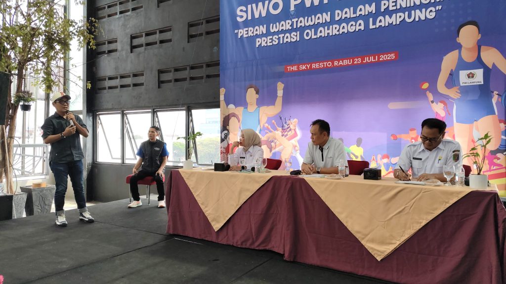 Bandarlampung–Seksi Wartawan Olahraga (SIWO) PWI Lampung Diskusi Bertema Peran Wartawan dalam Peningkatan Prestasi Olahraga di The Sky Resto, Rabu (23-7-2025).