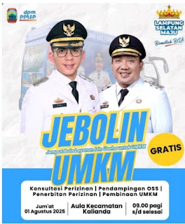 – Program “Jebolin UMKM” akan digelar secara keliling ke 17 kecamatan di wilayah Lampung Selatan, dimulai dari Kecamatan Kalianda pada 1 Agustus 2025.