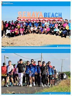 Kegiatan olahraga santai ini dimulai dari rumah dinas bupati dan menempuh rute sepanjang lima kilometer. Dengan irama langkah yang ringan namun penuh energi, para peserta disuguhi pemandangan memukau khas pesisir selatan: birunya lautan di satu sisi, rimbunnya pepohonan di sisi lainnya, serta megahnya Gunung Rajabasa yang berdiri tenang di kejauhan.