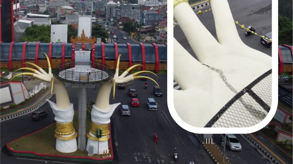 Bandar Lampung – Walikota Bandar Lampung Eva Dwiana memastikan bahwa Ikon jari Jembatan Penyeberangan Orang (JPO) Siger Millenial retak adalah hoax. Hal itu disampaikan oleh Walikota Eva Dwiana saat melakukan pengecekan JPO. Kamis 14 Agustus 2025.