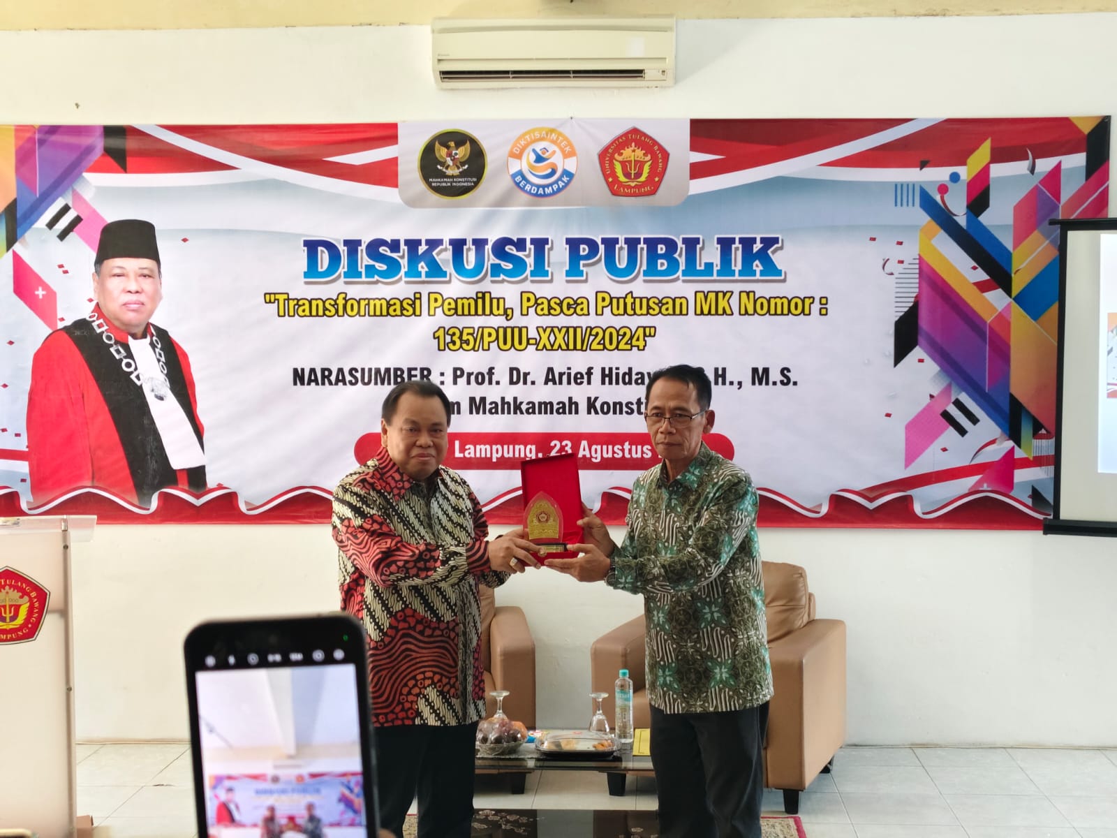 Acara tersebut menghadirkan Hakim Mahkamah Konstitusi (MK) Republik Indonesia, Prof. Dr. Arief Hidayat, sebagai narasumber utama. Diskusi dipandu oleh akademisi hukum UTB Lampung, Topan Indra Karsa.