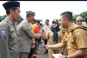 Kegiatan yang berlangsung di Lapangan Saburai Enggal, Tanjung Karang Pusat ini dipimpin oleh Wali Kota Bandar Lampung, Hj. Eva Dwiana, S.E., M.Si dan diikuti oleh unsur Forkopimda Kota Bandar Lampung, jajaran OPD, TNI-Polri, camat, lurah, hingga babinsa, babinkamtibmas, dan linmas se-Kota Bandar Lampung.