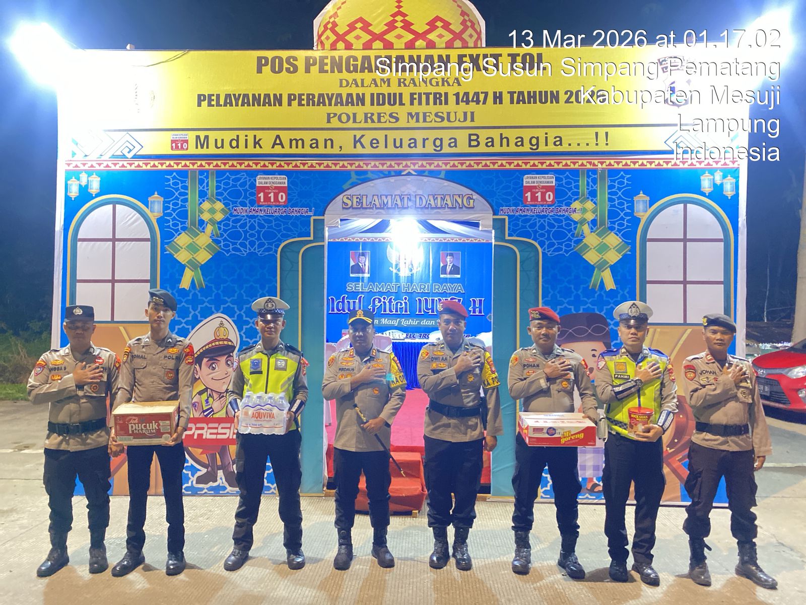 MESUJI –Hari pertama Pelaksanaan Ops Ketupat 2026 Kapolres Mesuji cek anggotanya yang bertugas di Pos Pengamanan (Pos PAM) dan Pos Pelayanan (Pos Yan) untuk memastikan kesiapan personel yang sedang bertugas serta memberikan dukungan agar tetap dalam kondisi prima. Jumat (13/03/26) Dini Hari.