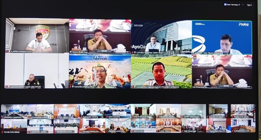 Bandar Lampung —- Staf Ahli Gubernur bidang Ekonomi, Keuangan dan Pembangunan (Ekubang), Bani Ispriyanto, mengikuti Rakor Pengendalian Inflasi Daerah secara daring, di Ruang Command Center Dinas Kominfotik Provinsi Lampung, Senin (20/4/2026).